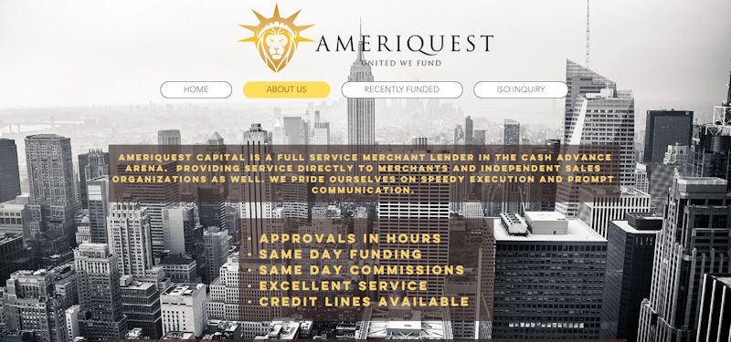 Ameriquest Capital is a full service merchant lender in the cash advance arena. providing service directly to merchants and independent sales organizations as well. we pride ourselves on speedy execution and prompt communication.