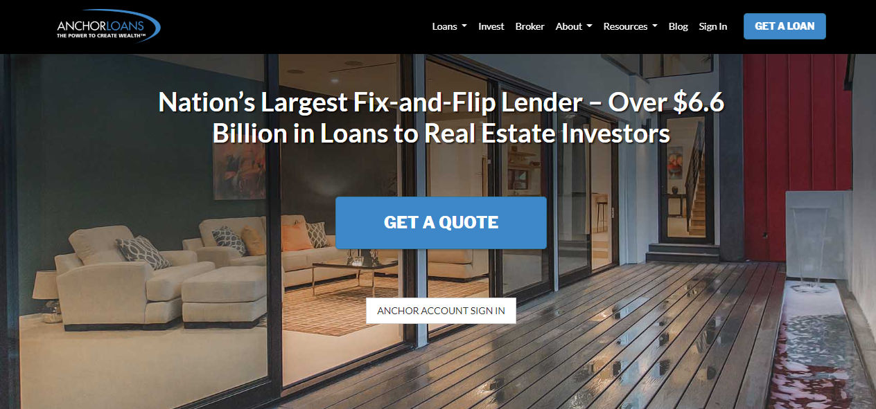 Operating since 1998, and now lending in 46 U.S. states and D.C., Anchor Loans has become the nation’s leading fix-and-flip lender by providing real estate investors with quick, dependable and flexible financing options for their fix-and-flip property investments.