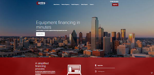 Centra Funding is committed to providing small businesses the opportunity to acquire equipment with a fast and simple finance solution. With over 40 years of industry experience, Centra finances businesses in almost every industry sector. Our headquarters is located in Plano, Texas with offices across the United States to serve your financing needs. Centra is a true funding company which uses its own funds for every transaction. Our strong equity and credit facilities allow us to approve and fund your transactions in the same day. We provide innovative equipment financing programs to equipment suppliers, manufacturers, and dealers and have the scale to meet the needs of their small business customers. Our proprietary processing system allow for a prompt credit decision on applications and the delivery of electronic documents which customers can sign on a mobile device.