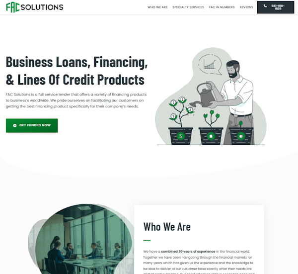 FAC Solutions is a full service lender that offers a variety of financing products to business’s worldwide. We pride ourselves on facilitating our customers on getting the best financing product specifically for their company’s needs.