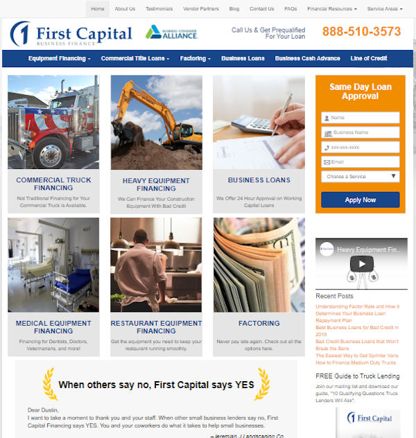 First Capital Business Finance is committed to helping you meet your cash flow needs to grow your business. We serve small and middle market businesses and large corporations with range of loan and financing options. The Company provides unmatched convenience and industry leading support to our clients nationwide. We offer a valuable combination of experienced representatives who have a thorough understanding of financing options available for your business and extensive working knowledge of guidelines needed to get your financing approved quickly. We realize your need to access capital to keep your business strong and successful. Unlike a bank loan that requires a lengthy approval process our process for business loans is simple and easy. We offer approvals in as few as two days and funding in as few as five days. We have earned a reputation in the industry and with our clients by offering informative advice and affordable solutions to help business owners handle their cash flow demands.
