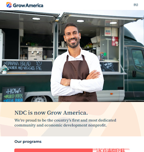 NDC is now Grow America. We’re proud to be the country’s first and most dedicated community and economic development nonprofit.