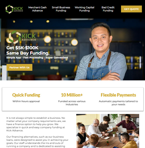 It is not always simple to establish a business. No matter what your company requirements are, we have a finance option to help you grow. We specialize in quick and easy company funding at Kick Advance.