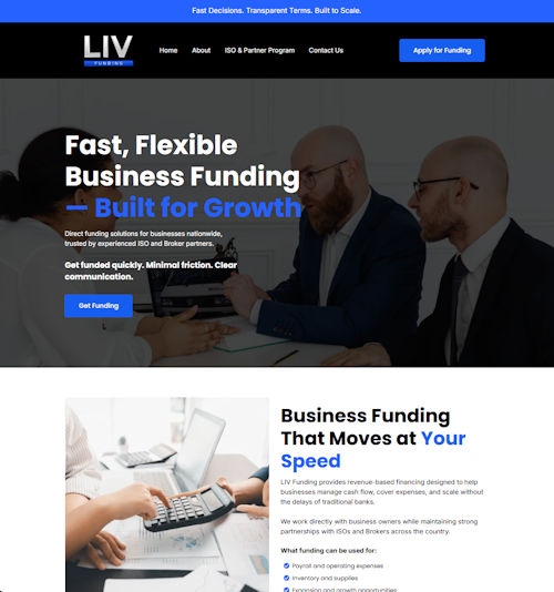 LIV Funding is a direct funding company specializing in revenue-based financing for small and mid-sized businesses across the United States.