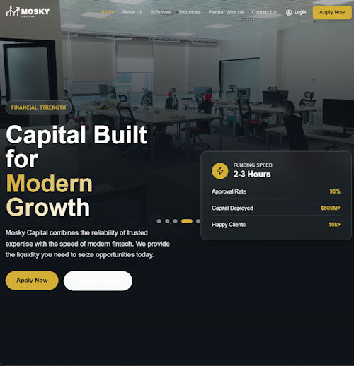 Mosky Capital combines the reliability of trusted expertise with the speed of modern fintech. We provide the liquidity you need to seize opportunities today.
