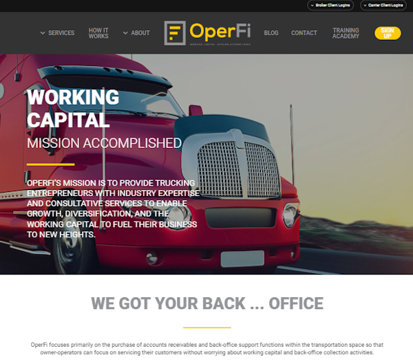 Operation Finance, Inc. dba OperFi was built on the idea of providing trucking entrepreneurs with working capital, business know-how, back-office support, and a platform to grow their existing operation in order to qualify for traditional bank financing and improve their bottom line.